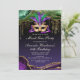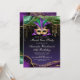 Laissez les bons moments rouler et célébrez Mardi Gras avec cette superbe invitation de fête masquée émeraude, or et violet ! Avec un design unique et accrocheur, cette invitation ravira vos invités et les mettra dans l'ambiance des vacances. Avec une belle palette de couleurs et un motif de masque complexe, cette invitation est parfaite pour tout événement sur le thème du carnaval ou de Mardi Gras. Les options de carton de haute qualité sont sûres de faire une impression durable, et l'invitation sera certainement chérie comme un souvenir de votre célébration spéciale. Alors n'attendez plus - commencez la fête avec cette belle et unique invitation de fête masquée !