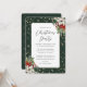 Cette élégante invitation de Noël verte et or avec confettis d'or, poinsettia blanche, sainte aux baies rouges et autres botaniques d'hiver est parfaite pour les fêtes de Noël, les soirées de vacances, les événements d'entreprise, les cocktails de vacances et plus encore. Personnalisez facilement cette invitation avec les détails de votre fête.