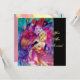 Nocturne vénitien coloré avec un caractère expressif et romantique : joueur de violon fantaisiste avec des costumes roses fuchsia scintillants et emplumés et un hibou drôle sous la lumière de la lune, avec une belle rose rouge dorée au verso de la carte. Peinture à l'aquarelle dans des couleurs vives rouge, vert, bleu, jaune, paillettes dorées, inspirée de Piero (Pierrot), la Comédie de l'Art (Commedia dell'arte) et le Carnaval de Venise. C'est une belle carte d'annonce pour les vacances, les fêtes costumées de Mardi Gras, les occasions spéciales, les fêtes d'anniversaire d'enfants, les 16 ans, le bal masqué du Nouvel An, la Saint-Valentin, les anniversaires, les rassemblements, à peu près n'importe quel événement que vous