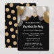 Elegant Black & Gold New Years Eve Party Invitation comprend des ballons de fête, des confettis d'or à l'arrière de la carte et du modèle de message en arrière - plan noir.Un design parfait pour envoyer des invitations de nouvelle année à vos amis et proches.Cliquez sur le bouton de personnalisation pour le customiser avec votre propre texte.
