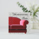 Canapé rouge moderne et damassé invitation à la fête du ménage.