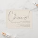 Annoncez votre bonheur à jamais dans le style avec notre carte d'invitation à la répétition mariage design moderne (Cheers!). Idéal pour les couples qui ont décidé de célébrer la veille de leur grand jour. Avec son design sophistiqué et ludique, cette invitation vous donnera le ton pour un événement inoubliable. La carte d'invitation présente un design de script minimaliste, ajoutant une touche d'élégance intemporelle à votre célébration. Conçu par TeeshaDerrick