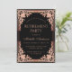 Cette élégante invitation à la retraite noire et rose (or rose) à l'air vintage, recommandée pour une femme, a un cadre orné (faux) rose en feuille d'or avec d'élégantes décorations baroques sur un arrière - plan noir. Le nom est écrit dans une calligraphie élégante. Tout le texte peut être personnalisé et a une couleur rose semblable au cadre doré rose. Le cadre vintage et orné est basé sur une reliure de livre française antique, par Georges Mercier (1885-1939) - Madame de Maupin par Teophile Gautier, édition 1911, désormais dans le domaine public.