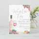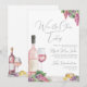 Invitation élégante à l'aquarelle pour dégustation de vins et de fromages. Un thème adorable de dégustation de vins et de fromages ou de vins, aux tons rose et violet, parfait pour une pendaison de crémaillère, un anniversaire, une fête de fiançailles, une soirée entre filles ou simplement pour l'amour du vin ! Comprend des bouteilles de vin rose à l'aquarelle, des verres de vin, un petit fromage jaune et des raisins adorables dans les tons rose et violet et, bien sûr, des feuilles de vigne vertes.