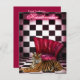 Invitation Soirée Disco Club Dames ou Enterrement de Vie de Jeune Fille. Carreaux noirs et blancs avec enseigne rose fluo et Chaise longue rose rouge avec Tigre. Peut être utilisé pour toute célébration ou événement. Personnalisez avec vos propres détails.