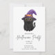 Célébrez Halloween avec ces adorables invitations avec un mignon chat noir portant un casquette de sorcière violette. Parfaites pour donner un ton éffrayant et amusant, ces invitations sont idéales pour tous les âges. Que vous soyez l'hôte d'un rassemblement familial ou d'une fête adulte festive, ce design charmant ajoute une touche de magie à votre événement. L'illustration ludique et l'écriture élégante font de cette invitation à la fois délicieuse et élégante, afin que vos invités soient heureux de se joindre à la fête d'Halloween.