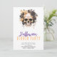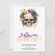 Célébrez l'Halloween avec style avec cette élégante Invitation Dîner d'Halloween. Dotée d'un crâne joliment décoré et orné de fleurs dorées et noires, cette invitation donne le ton parfait pour une soirée sophistiquée mais éffrayante. Le design complexe du crâne ajoute une touche de luxe au thème d'Halloween, ce qui en fait un choix exceptionnel pour votre dîner. Le mot "Halloween" est élégamment affiché dans une jolie police de caractères violets, ajoutant une pop de couleur et un élément ludique à l'invitation. Les mots "Dinner Party" sont écrits dans une police orange ouverte, créant un look amusant et accueillant. La combinaison de ces polices ajoute un intérêt visuel et donne l'ambiance d'un rassemblement festif. Le reste des informations, y compris la date, l'heure et l'emplacement de la fête du dîner, est présenté dans une police de caractères noir classique. Cela garantit que tous les détails essentiels sont clairs et faciles à lire, permettant à vos invités de RSVP rapidement et de se joindre à la fête d'Halloween. Cette invitation de Dîner d'Halloween est non seulement un choix pratique pour votre événement, mais aussi un grand cadeau pour les amis ou la famille qui aiment accueillir leurs propres rassemblements d'Halloween. Son design unique et son souci du détail en font une pièce unique qui impressionne vos invités et prépare le décor pour une soirée mémorable.