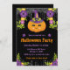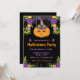 Joli Citrouille Floral Halloween design avec un pois noir arrière - plan et parties scintillant à goutte noire