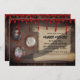 Cette invitation de soirée d'Halloween mystère de meurtre effrayant présente un thème sinistre de scène de crime. L'image présente des portraits de style vintage accrochés dans des cadres sur un mur déchiré. Vous pouvez inclure vos propres photos ou images personnalisées. Les informations sur la fête apparaissent à droite, imprimées sur un vieux parchemin. L'ombre d'une main brandissant un couteau est représentée par-dessus. Du sang coule sur la partie supérieure.