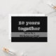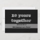 Créez vos propres invitations personnalisées pour votre dixième anniversaire de mariage - Sur le devant se trouve un texte en 3D qui ressemble à du métal brossé gris, à de l'étain ou à de l'aluminium. Il est écrit 10 ans ensemble. Sur une bande transparente, en lettres ombrées de noir, il est écrit Vous êtes invités à une fête d'anniversaire. Au dos, des lettres en relief noir pour les informations personnalisées de votre fête d'anniversaire de mariage. Personnalisez comme vous le souhaitez. Visitez notre boutique en ligne angela65 Zazzle pour de nombreux autres articles pour une fête de dixième anniversaire de mariage.