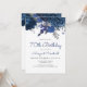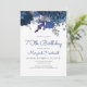 Cette invitation élégante pour un 70e anniversaire présente une bordure supérieure florale avec des fleurs bleu marine et des feuilles en faux feuille d'argent. Les mots "70e Anniversaire" et le nom de l'invité d'honneur apparaissent dans une écriture manuscrite décontractée bleu marine, tandis que le reste du texte personnalisable est en police sans serif gris charbon. Le motif floral est répété au verso. Modifiez facilement le texte pour un anniversaire de n'importe quel âge.