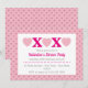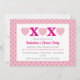 Jolies cartes d'invitation rose pour votre soirée de la Saint-Valentin. Cœurs et baisers d'amour en haut. Vous trouverez ci-dessous des modèles pour ajouter vos coordonnées. Le fond est rose avec un motif de petits cœurs d'amour rose.