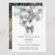 Une fête du Nouvel An moderne unique, avec des ballons d'argent à effet métallique aquarelle attachés avec un ruban. Un design simple et élégant pour la fête du Nouvel An qui peut être customisé pour n'importe quelle année.