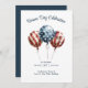 Elégante invitation aux ballons rouges blancs et bleus pour votre barbecue ou célébration à thème patriotique.
