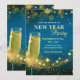 Invitation Soirée élégante du Nouvel An en or et bleu