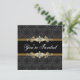 Invitation modèle de soirée formelle en noir et or avec dentelle noire. Ajoutez vos détails au recto et au verso en cliquant simplement sur le bouton orange "Personnalisez-le !" pour commencer à ajouter les détails de votre événement, le style de police, la taille et la couleur de la police, ainsi que le libellé. Veuillez noter que tous les modèles d'invitation que vous trouverez sur Zazzle sont des graphiques imprimés sur du papier plat sans véritables bijoux, rubans, reliefs, gaufrages ou pièces ajoutées.