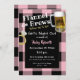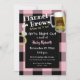 Passez une soirée entre filles amusante avec ce Flanelle et Bières avant le jour J, Invitation à une soirée d'enterrement de vie de jeune fille en damier à carreaux buffle noir et rose et en mug à bière et bague de diamants amusants. Modifiez le texte à votre guise. La couleur de fond peut être changée du rouge à n'importe quelle couleur.