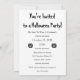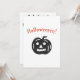 Carton d'invitation de fête d'Halloween mignon et effrayant avec des graphismes noirs sur fond blanc. Le devant comporte une citrouille noire et le mot Halloweeeen avec une orthographe volontairement erronée dans une police orange effrayante ! Le texte au verso est "Vous êtes invités à une fête d'Halloween !" dans une police effrayante. Vous pouvez personnaliser le reste du texte : "N'oubliez pas de porter un déguisement", date, heure, lieu, RSVP / n° de téléphone. Deux versions plus petites de la citrouille sont également imprimées au verso.