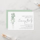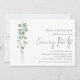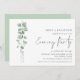 Soirée Mariage Eucalyptus élégante. Style botanique minimaliste à l'invitation de vos invités mariages de soirée. Un script informel écrit à la main pour Soirée et le reste du texte que vous pouvez facilement personnaliser. Une élégante branche de feuillage aquarelle descend sur le côté gauche.