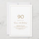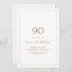 Cette invitation minimaliste à la fête du 90e anniversaire d'or est parfaite pour une simple fête d'anniversaire. Le design romantique moderne présente une typographie classique d'or et de blanc associée à une calligraphie rustique mais élégante avec un style vintage lettré à la main. Personnalisable dans n'importe quelle couleur. Gardez le design simple et élégant, en l'état, ou personnalisez-le en ajoutant vos propres graphiques et artwork.