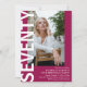 Moderne Invitation 70e Anniversaire - Design dispose d'un arrière - plan rose qui peut être changé à n'importe quelle couleur, une photo de portrait, le texte 'SEVENTY' en caractères blancs gras et un élégant modèle de fête d'anniversaire qui peut facilement être personnalisé. Elégant, tendance et parfait pour tout âge !