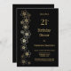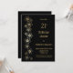 Une élégante invitation à dîner noire de 21ème anniversaire avec un spray de fleurs d'or.