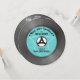 Invitation pour une soirée rétro avec texte personnalisable et couleur d'étiquette changeable avec des étoiles sur fond de disque vinyle juke-box. Idéal pour les anniversaires rétro, mariages, DJ, enterrements de vie de garçon ou de jeune fille.