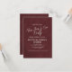 Faites-vous plaisir avec l’invitation simple et élégante de la fête de la Saint-Sylvestre en Bourgogne. Cette invitation sophistiquée présente une riche teinte bordeaux qui respire la chaleur et l'élégance, ce qui en fait le choix idéal pour des réunions formelles et des célébrations élégantes. Avec son design intemporel, cette invitation ouvre la voie à une soirée mémorable de festivités, invitant vos invités à se joindre à vous pour accueillir avec grâce et élégance la nouvelle année. Conçue pour être à la fois raffinée et informative, cette invitation fournit tous les détails essentiels pour votre fête dans une mise en page classique. Vous y trouverez un beau design bordeaux qui ajoute une touche de sophistication à votre célébration du Nouvel An. Idéal pour les fêtes de la Saint-Sylvestre, les événements officiels et les rassemblements de haut niveau. Entièrement personnalisable avec les détails de votre fête pour une touche personnelle. Imprimé sur papier de haute qualité pour améliorer la profondeur de la couleur bordeaux et assurer une sensation de qualité supérieure. Idéal pour les hôtes qui souhaitent créer un événement mémorable et élégant que leurs invités apprécieront. Invitation vos amis et votre famille à sonner dans le Nouvel An avec élégance - commandez votre Simple et Élégante Soirée de Bourgogne Invitation aujourd'hui et faites votre compte à rebours à minuit vraiment inoubliable!