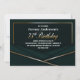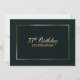 Préparez-vous à fêter dans le style avec cette magnifique invitation à la fête du 75e anniversaire de forêt encadrée d'or ! Parfait pour les affaires semi-formelles ou à cravate noire, cette invitation respire le raffinement et l'élégance. Que vous soyez l'hôte d'un dîner intime ou d'une grande fête, cette invitation fera de votre événement un moment inoubliable. Si vous cherchez un moyen élégant et sophistiqué d'invitation vos invités à votre 75ème anniversaire, ne cherchez pas plus loin que cette belle invitation verte encadrée d'or.