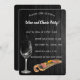 Cette invitation éditable présente un verre de vin versé et un plateau de charcuterie sur un fond en bois sombre. Les détails au recto sont modifiables, vous pouvez donc modifier les informations ainsi que le style, la taille et la couleur de la police. Il y a également un champ modifiable pour des informations supplémentaires au verso.