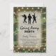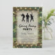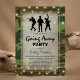 Cartes d'invitation de fête militaire personnalisées pour célébrer le départ d'un soldat pour le service national ou pour célébrer son retour à la maison. Avec un fond camouflage, un centre de pièce superposé vintage, des troupes de marine, des guirlandes lumineuses et un modèle de fête moderne.