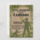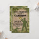 Cette invitation personnalisée à la fête comporte un thème de mission militaire. Des images d'hommes de l'armée verte jouent aux soldats sont imprimées en bas, avec un en parachute en haut. Un motif camouflé borde les images.
