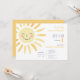 Faites de l'anniversaire de votre enfant un moment inoubliable grâce à cette invitation à thème moderne et ensoleillée. Le design présente une aquarelle illustrant un soleil jaune, sur un simple arrière - plan blanc qui le rend à la fois amusant et charmant, tandis que l'expression "Premier voyage autour du soleil" ajoute un élément ludique à la carte. Utilisez les outils de conception pour customiser le texte, les polices et les couleurs ! Aussi disponible en téléchargement numérique pour les évites.