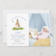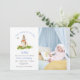 Cute hand painted watercolor rabbit in the garden 1st birthday boy invitation with photo,