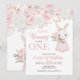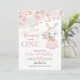 Celebrate your little girl with this "Some Bunny is Turning One" invitation. Featuring a sweet watercolor bunny holding tulips and soft pink floral roses. Perfect for a spring garden party or bunny-themed first birthday. Easily customize with your daughter's party details.