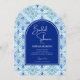 Celebrate in coastal style with this “Something Blue” bridal shower invitation inspired by the romance of the Amalfi Coast. The design features a deep cobalt blue arch framed by a Mediterranean tile border, accented with elegant white lettering and handwriting-style script for a modern, breezy feel. Printed on an on-trend arch-shaped card (with the option to switch to a rectangle or other silhouettes), this invitation blends seaside charm with chic Italian style. The reverse showcases the full Mediterranean tile pattern, creating a cohesive and beautiful look your guests will love. Perfect for coastal, beach, seaside, or “That’s Amore!” themed bridal showers — and beautifully coordinated with both the Something Blue Bridal Shower and the Amalfi Coast Amore wedding collections.