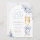 Celebrate the bride-to-be with this Brunch and Bubbly Blue Bridal Shower Invitation, featuring soft dusty blue watercolor florals and a dainty blue bow tied around a golden champagne glass. This unique design blends romantic botanical elements with a touch of sparkle, perfect for a chic spring or summer celebration. The elegant script adds timeless charm, while the bubbly detail introduces a festive, modern twist. Ideal for a sophisticated bridal shower filled with joy, love, and prosecco.