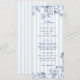 Our something blue menu card features classic stripes adorned with navy floral line art - The perfect addition to your bridal shower or event!