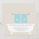 Les invitations à la douche de mariage personnalisées sont illustrées par une belle illustration d'une baignoire et de ses serviettes monogrammées et ses serviettes.