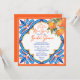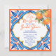 Elle a trouvé son Main Squeeze nuptiale douche bleu orange invitation modèle instantanée téléchargement, bleu Majjolica espagnol tuiles méditerranéennes bouquet d'oranges avec script décontracté moderne, agréable pour les réceptions d'été en plein air.