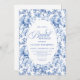 Celebrate the bride-to-be in style with this bridal shower invitation featuring French toile de jouy roses in shades of navy, royal, dusty, and deep blue. Inspired by classic European floral design, this elegant invitation blends timeless sophistication with modern charm, perfect for a chic and memorable bridal shower celebration.