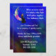Une petite sorcière se trouve sur une lune en croissant décorée de fleurs roses, et une petite araignée suspendue au-dessus d'un arrière - plan bleu foncé, créant une invitation totalement mignonne et amusante à la fête d'Halloween. Le côté arrière a l'arrière - plan bleu foncé, et une image plus large de la sorcière, l'araignée et la lune.