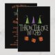 Invitation parfaite pour un Bunco ou Bunko d'octobre pour inviter vos sorcières préférées à une soirée amusante de jeu de Bunco. Le design présente trois chapeaux de sorcière ainsi que des dés avec un motif de sorcière volante. Thème de couleurs violet, vert et noir.