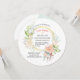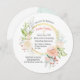 Des pastels douces de rose et de feuilles entourent un cadre doré sur cette invitation ronde. Embellisté avec une croix qui peut être déplacée ou enlevée. Visitez notre boutique soeur www.pixieprints.com pour tous vos besoins d'invitation!