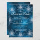 Rustique élégant hiver bleu, blanc et gris argenté dîner invitation modèle sur l'aquarelle marine arrière - plan avec cadre de flocons de neige scintillant. +++++++++++++++++++++++++++++ Facile à personnaliser avec vos détails ! ++++++++++++++++++++++++++ L'invitation est adaptée pour les dîners de répétition de pays rustique d'hiver ou d'autres fêtes de couple.