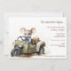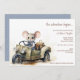Elégante et amusante, ces mignonnes aquarelles petite souris conduisant une voiture bleue invitation bébé douche sont parfaites pour tous les baby showers. Le design comprend une mignonne souris aquarelle peinte à la main qui sourit alors qu'il est assis dans une voiture verte et tex qui peut être customisé pour répondre à vos besoins de planification de fête. Le dos est muni d'un motif à pois sur une couleur arrière - plan changeante.