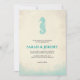 Une belle invitation de mariage avec un hippocampe et des vagues sur du papier taché. Parfait pour toute mariage de plage ou d'été !