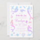 Célébrez le moment de joie de l'anniversaire de votre petite fille sur le thème de la "Petite sirène" avec une invitation éclatante et enchanteresse. Ce design charmant présente des sirènes rose pastel, turquoises et violettes et sous les motifs marins. Donnez le ton pour une fête magique et créer une ambiance enchanteresse avec cette invitation de fille d'anniversaire mignonne et délicieuse.