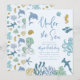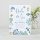 Carte d'invitation baby shower du garçon mignonne illustrant des créatures marines et des récifs coralliens. Le texte dit "sous la mer".
