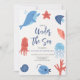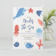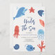 Célébrez la journée spéciale de votre petit avec cette invitation d'anniversaire sur le thème de la mer, avec de l'aquarelle vie de mer de toutes sortes!